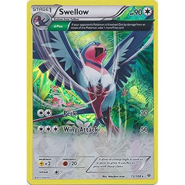 Amazon Com Pokemon Swellow 72 108 Xy Roaring Skies Holo Toys Games